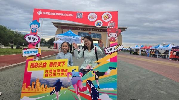 无论是刚冲过终点、手握奖牌的参赛者,还是为选手呐喊助威的观赛群众,都能在此驻足合影。福彩志愿者还会主动帮忙调整角度、按下快门,用镜头定格选手的荣耀时刻、亲友的温情瞬间,并且为合影者送上精美的留念品,大家在打卡点共同喊出“福彩聚力,跑出魅力,福彩同行,赛出奇迹”的响亮口号,现场气氛热烈非凡。不少参赛者深受感动,为塔城福彩送上真挚祝福,表达对福彩公益行动的认可与赞美 。