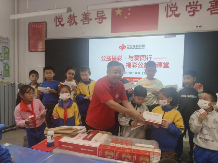 “小朋友们,知道特殊教育学校的新文具从哪里来吗?”当这个问题在塔城市沙湾第四小学的教室响起,一堂特别的“公益福彩,与爱同行”主题课开始了。塔城福彩运维管理员张军彬带着故事与礼物,为孩子们打开了公益世界的一扇窗。