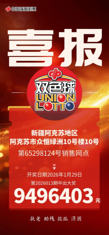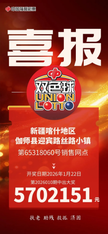 时隔仅14天,捷报再次传来。1月22日,“双色球”游戏2026010期开奖,全国中出19注一等奖,单注奖金570.2151万元,新疆彩友凭借出色运气揽获其中2注。其中,乌鲁木齐市新市区65010691销售网点的彩友采用胆拖投注,中得1注一等奖及4注四等奖,奖金合计571.4151万元;喀什地区伽师县65318060销售网点的彩友则凭借单式投注收获1注一等奖,轻松解锁新年惊喜。