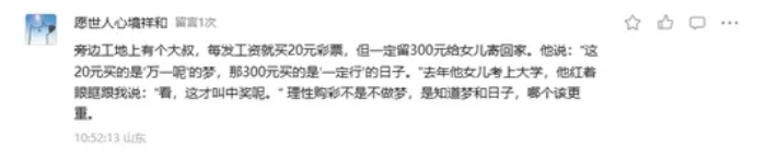 老顾客王叔:老板太清醒了,每次来你这买彩,都能被你劝两句,踏实!