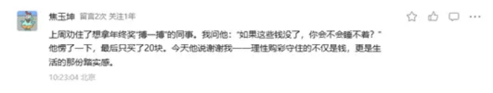 近日,收到了不少暖心留言,有分享自己的理性购彩故事,有非理性购彩的疏导建议。每一条留言,都藏着大家对理性购彩的认可,今天就来公开一波暖心留言~