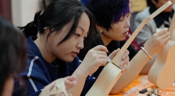 放下扫码枪,拿起小琴弦。在尤克里里手工制作环节,女销售员们展现了专注与灵巧的另一面。调试琴弦,绘制图案,指尖流淌的不仅是创意,更是对生活的热爱。当简单的音符从亲手制作的琴上响起,笑容与成就感在现场洋溢。